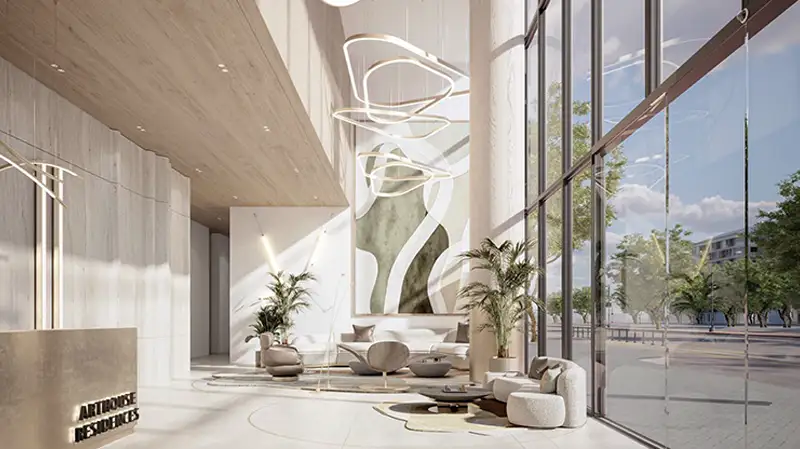Designed to mirror the metropolitan elegance of New York City, Arthouse Residences showcases white, pearl-like facades, floor-to-ceiling glass windows, and open-concept layouts. Every detail reflects the signature design of the renowned Arthouse Hotel NYC, from the landscaped podiums and aligned palm trees to the resort-style amenities, creating a visual masterpiece and an inspiring living environment.