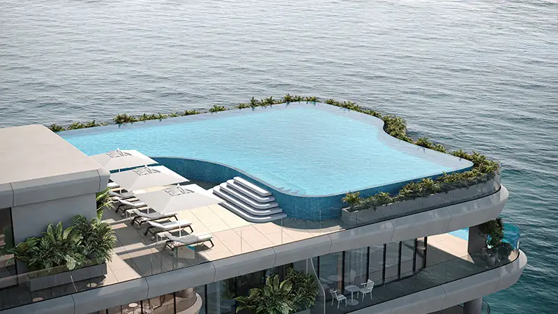 Architecturally, the façade reflects Italian craftsmanship and refined design principles, thoughtfully curated to complement the natural beauty of the Arabian Gulf coastline. The development features a majestic U-shaped configuration, ensuring that each residence benefits from panoramic sea views and abundant natural light.